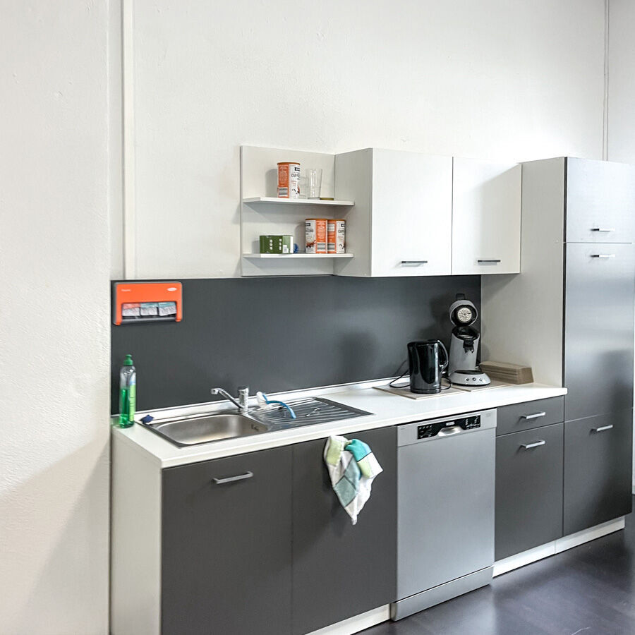 Pause gefällig? Die offene Einbauküche mit Sitzecke hält Kühlschrank, Mikrowelle, Kaffeemaschine, Wasserkocher und Geschirrspüler bereit. Wer etwas frische Luft schnappen möchte, kann in den nahegelegenen Stadtpark Liebesgrund / Hoher Wall gehen. In etwa fünf Gehminuten erreichen Sie auch die Innenstadt und zum Beispiel die Arneken Galerie.