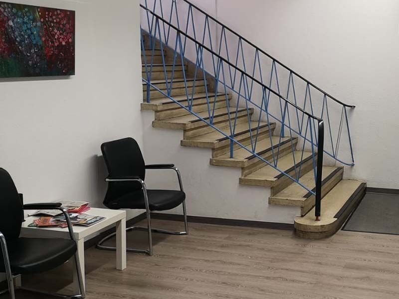 Über den Eingang mit großer Glasfront erreichen Sie Ihre Schulungsräume, die mit hohen Decken, vielen Fenstern, guter Beleuchtung und modernem Venylboden für ein angenehmes Raumgefühl sorgen.