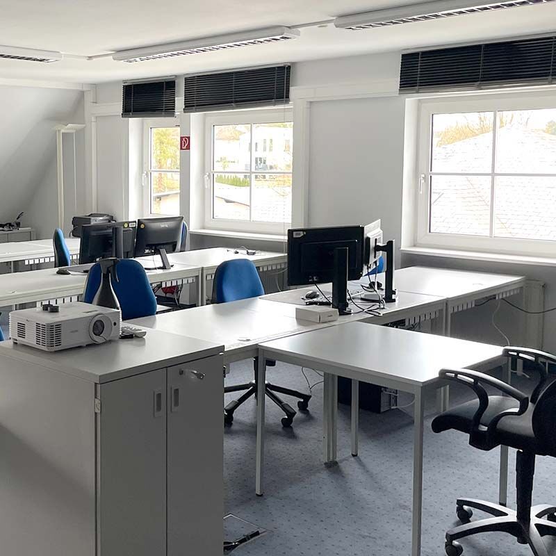 Der Standort in Montabaur liegt ganz zentral und ist gut erreichbar. Im Umkreis finden Sie kostenlose Parkplätze oder können gebührenpflichtig in der öffentlichen Tiefgarage parken. In der direkten Umgebung gibt es einen Supermarkt, etwas weiter entfernt außerdem weitere Einkaufsmöglichkeiten und gastronomische Angebote. In Ihren wohlverdienten Pausen können Sie sich auch in der Teilnehmerküche stärken.